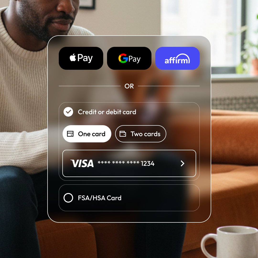 Support credit cards, debit cards, HSA/FSA cards, Apple Pay, Google Pay, and split payments when needed.