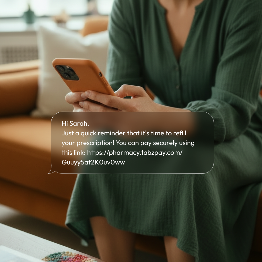 Instead of calling patients for card numbers or waiting to collect copays at pickup, pharmacies send a secure payment link the moment a prescription is ready.