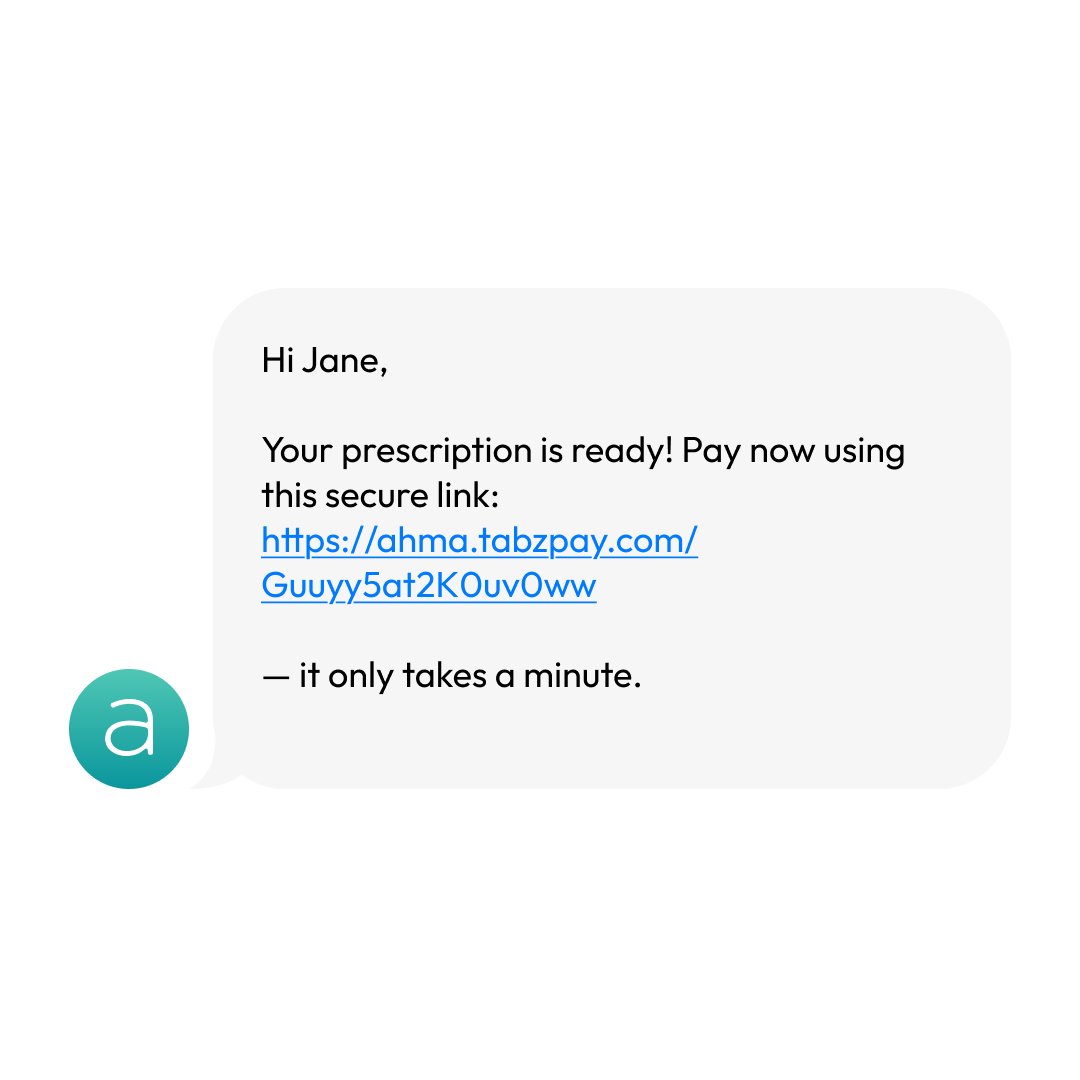 Send secure payment links for balances, OTC purchases, and special orders from the Tabz dashboard. Patients pay from any device: no paper statements, no phone collection.
